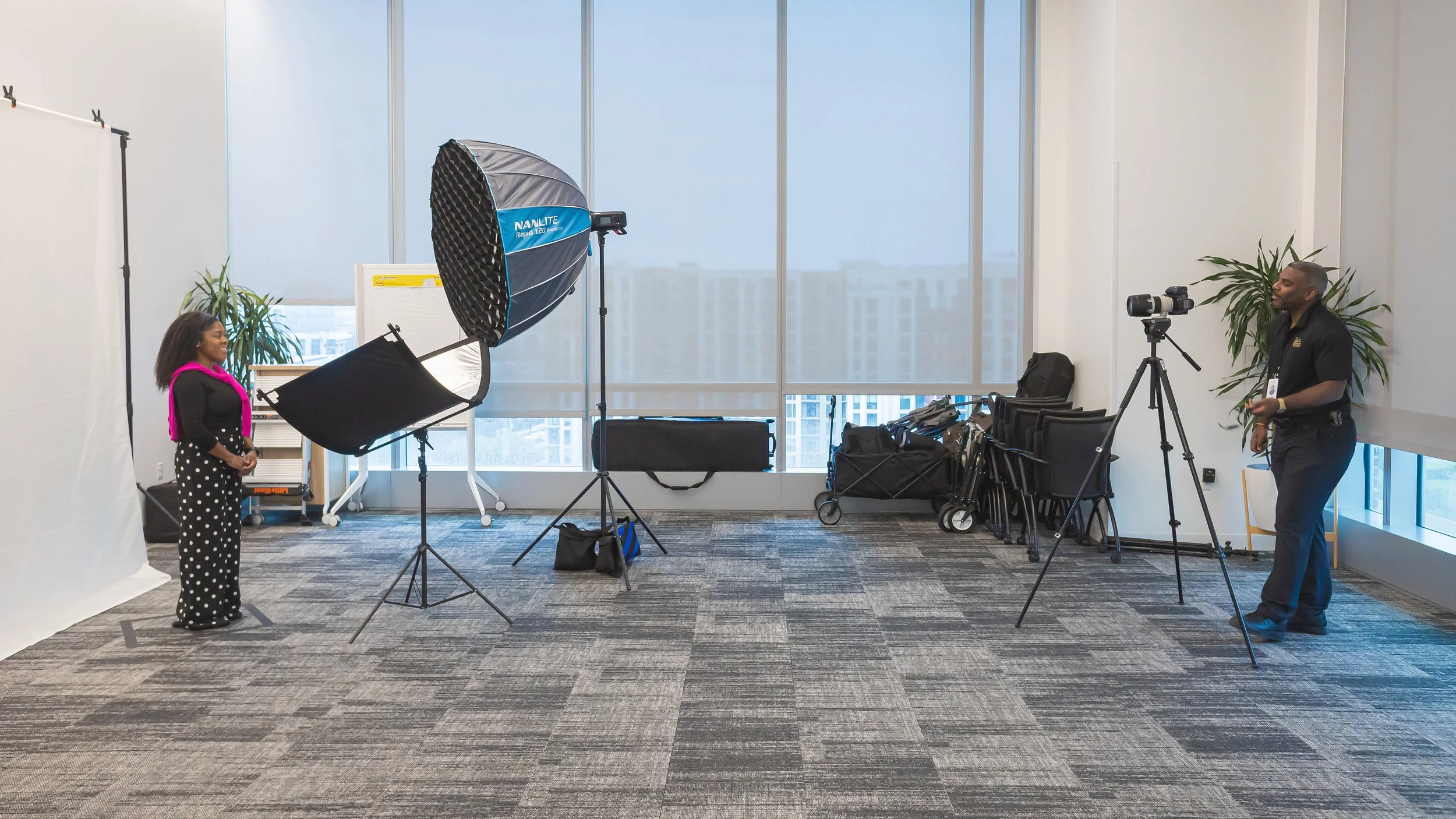 In as little as 20 minutes, we can transform any space — from a hotel ballroom to a boardroom — into a fully equipped production environment. Every detail is built for efficiency, ensuring that your team or attendees step into a professional setting that feels polished, seamless, and ready for high-quality content creation. We photograph your team, manage video production, and get your images back to you quickly.